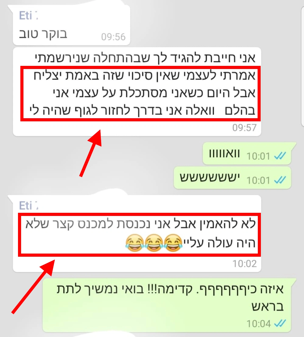 אני אתן לך ליווי אישי בכל יום, בצורה הכי קלה ומהנה - ווטסאפ, וגם פורטל אישי שאני פותח לך.