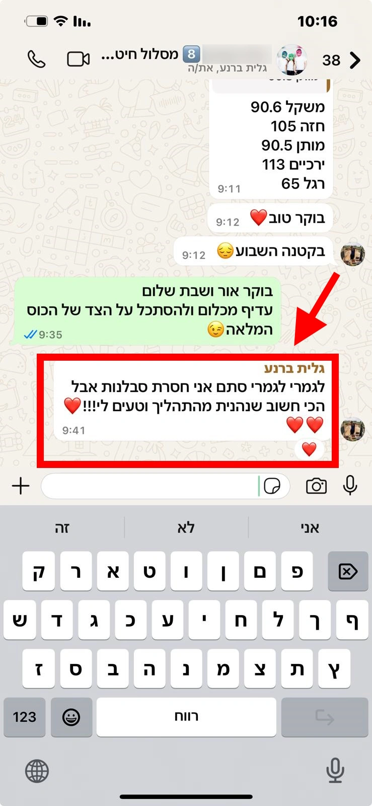 הפסיקו הכאבים, בגדים עולים עליי בכיף, אין יותר בולמוסים ואין רעב.